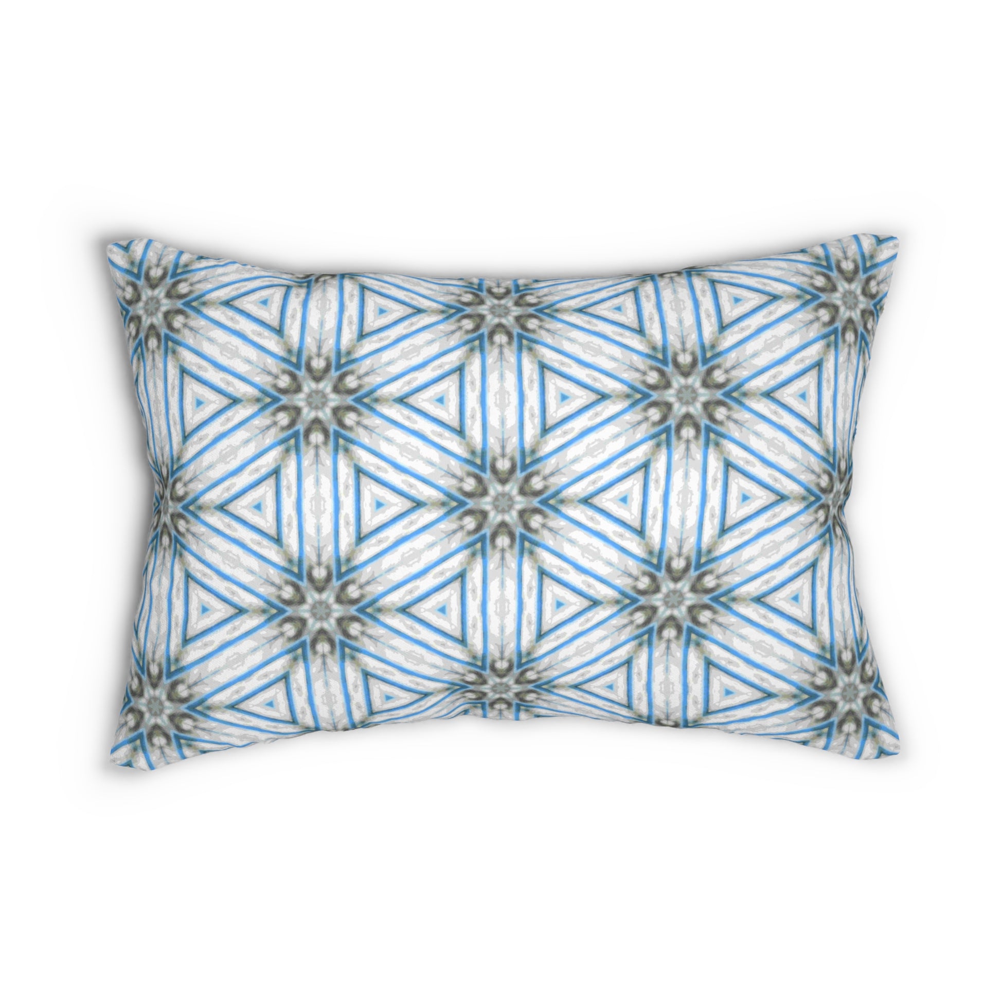 Blue Pollen Path Lumbar Pillow - Kaleidoscope Throw Cushion for Modern Boho or Nordic Decor