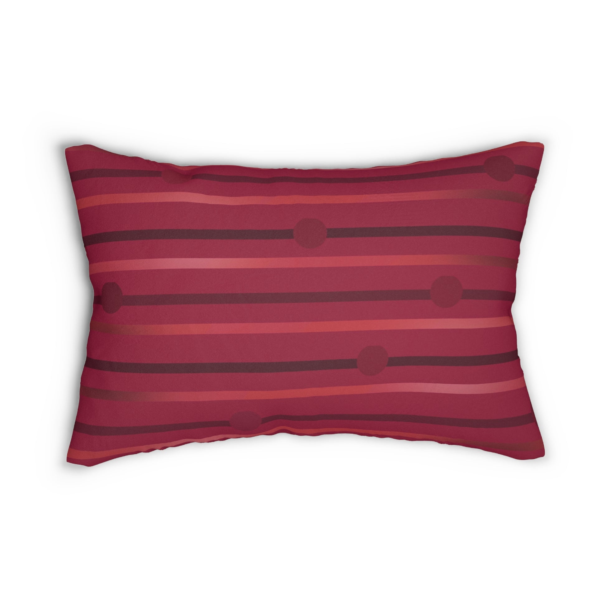 Red Striped Lumbar Pillow – Warm Burgundy and Dot Pattern Cushion for Modern or Retro Home Decor
