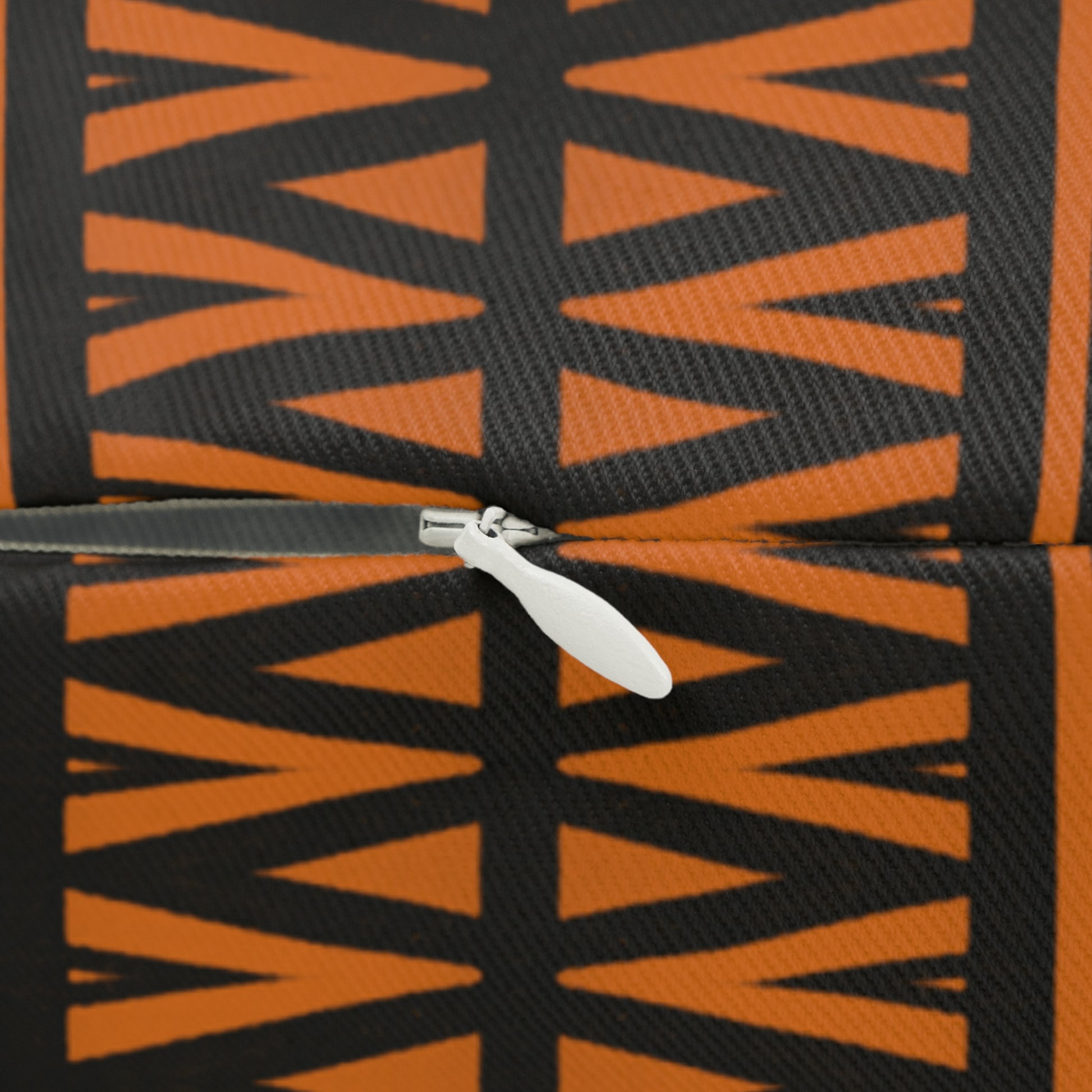 Tribal Geometric Lumbar Pillow – Burnt Orange & Black Decorative Cushion for Boho, Rustic, or Global Decor Homes
